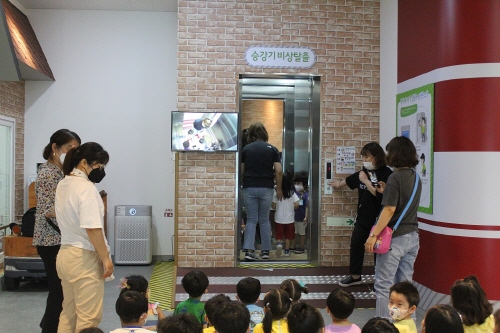 9일 동심어린이집 풍수, 물놀이, 심폐, 지진, 승강기, 화재, 소리 안전교육체험