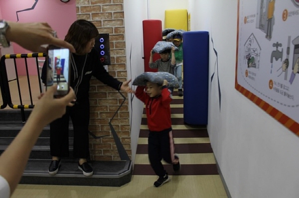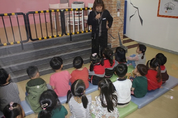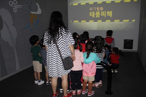 풍수, 지진, 소리, 물놀이 두반으로 나뉘어 안전교육인 진행되었으며, 무서워하지 않고 질서를 잘 지키며 안전교육체험을 했습니다.