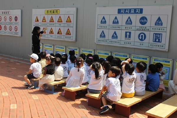 풍수, 지진, 소리, 물놀이, 실외교통 안전교육을? 질서을 잘 지키며 위급상황시 어떻게 대처해야 하는지 배우는 아이들의 모습이 너무나 기특했다.