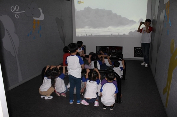 풍수, 지진, 소리,물놀이 체험을 교육을 받으며 위급상황시 오늘 배운 안전수칙을 침착하게 당황하지 않고 하기로 약속했다.
