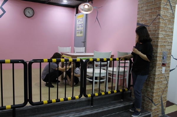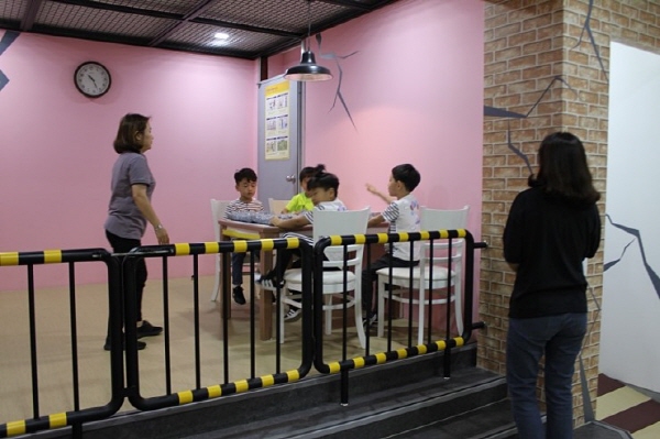 풍수,지진,소리,물놀이,실외교통 안전교육체험을 받으며 위급상황시 당황하지 않고 침착하게 안전교육을 생각하여 하겠다고 약속했다.