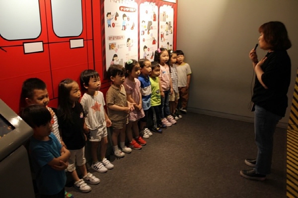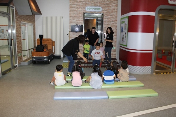 풍수,지진,소리,물놀이,화재,심폐.승강기 위급상황시 당황하지 않고 배운 안전수칙을 침착하게 해보겠다고 약속했습니다.