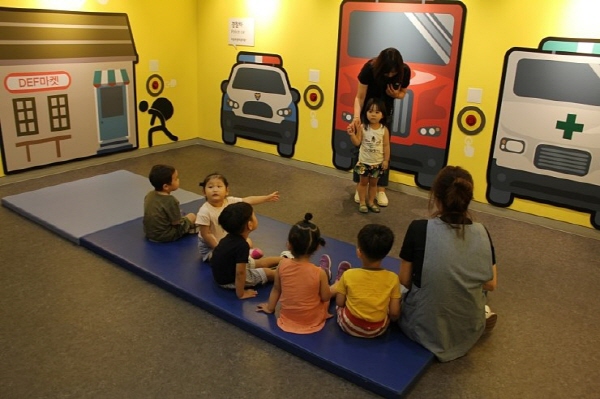 7월 4일 해,달,별 어린이집 4세 7명 어린이들이 안전체험교육을 받았습니다.