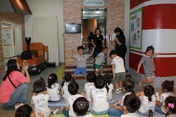 23일 석장어린이집 6~7세 43명 어린이들이 진천종합안전교육체험관에 안전체험교육을 받으러 왔다.