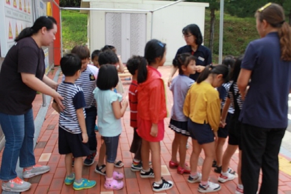 2일 남신초병설유치원 만 3~5세 23명 어린이들이 진천종합안전교육체험관에 안전교육을 받으러 왔다.