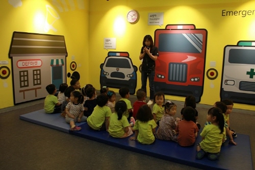 10일 진천어린이집 4~6세 50명 어린이들이 진천안전교육체험관에 방문하여 풍수,지진, 소리체험존에서 안전체험교육을 받았다.