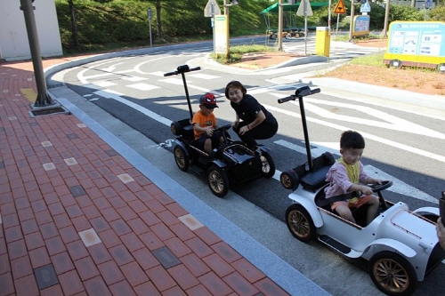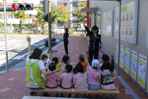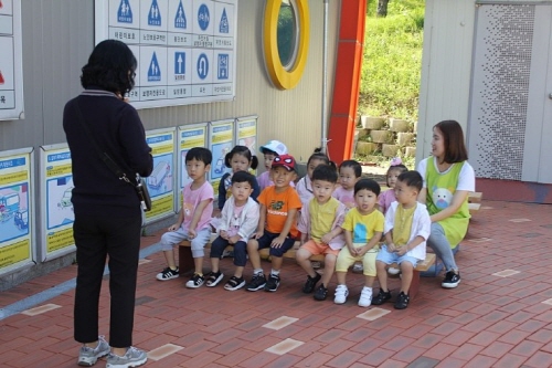 18일 무지개어린이집 만1~2세 12명 어린이들이 진천종합안전교육체험관에 실외교통 안전체험교육을 받으러 왔다.