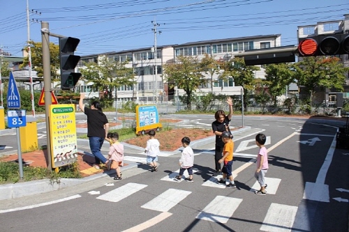 신호등이 있는 횡단보도, 신호등이 없는 횡단보도, 안전벨트 착용, 표지판 보기 교통안전에 대해 배우고 체험하는 교육을 받았다.