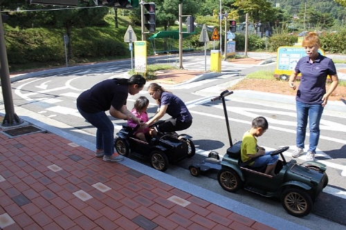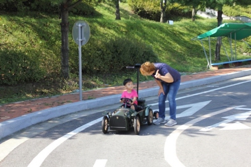 실외교통체험 횡단보도 건너기, 안전벨트 착용, 자동차 타기 체험을 했다.