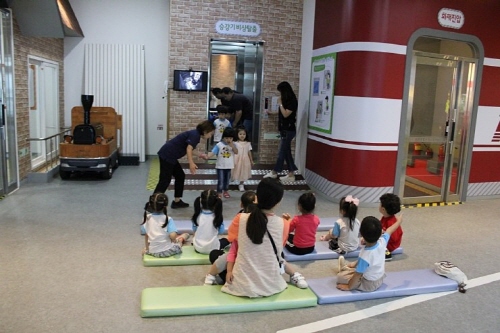 19일 조은영아어린이집 4세 30명 어린이들이 진천종합안전교육체험관에 안전교육을 받으러 왔다.