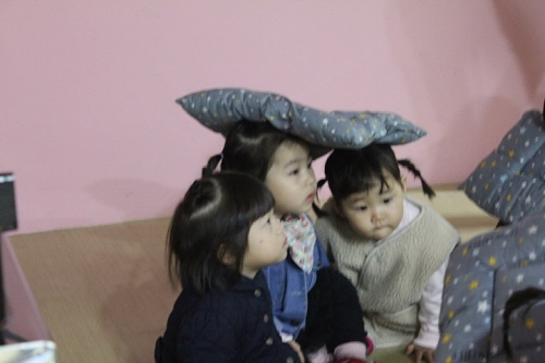 만2세 어린이들은 지진체험존에서 여러번 반복 체험한 결과인지 몸이 먼저 반응해 방석으로 머리를 보호하는 모습은 교육하는 강사 입장에서 뿌듯한 마음이 들었다.