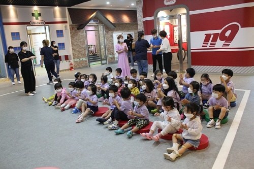 7월 1일 초평어린이집 35명 어린이들이 진천종합안전교육체험관에 풍수, 심폐, 지진, 물놀이