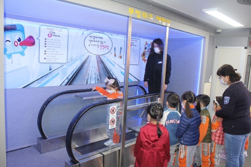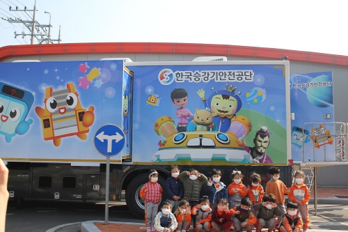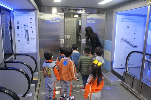큰트럭안에 엘리베이터체험실.에스컬레이터체험실.그리고무빙워크체험실이 있어서 어린이들이 무척 신기해 하며 좋아했다.