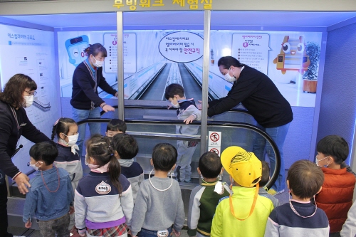 이동식승강기체험후 생활안전체험 하고 어린이집으로 돌아감.